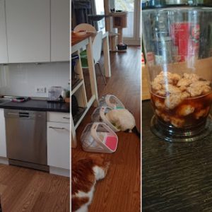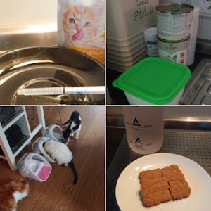 Nun erst einmal das Schmerzmittel für Neo nach seiner Zahnsarnierung am Donnerstag in Pudding für Katzen vermatschen, parallel das Futter bereit machen. Melosus hat den Nachteil Übelkeit auszulösen wenn es nicht mit Futter gegeben wird. Daher bekommt Neo dieses Mittel mit dem Pudding als Vorspeise zum Frühstück. Das klappt sehr gut.