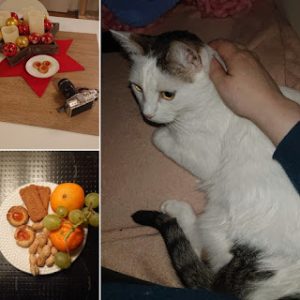Danach habe ich dann erst einmal die Küche aufgeräumt, die Katzenklos geputzt und den Müll raus gebracht. Und irgendwie war es schon wieder Zeit für ein Mittagessen. Meinten zumindest Neo und Pino. Athos hat auch etwas genommen bevorzugte dieses mal aber nicht mit den Kumpels zu speisen. Er musste sich erst noch erholen von seiner nächtlichen Weihnachtskugelparty.